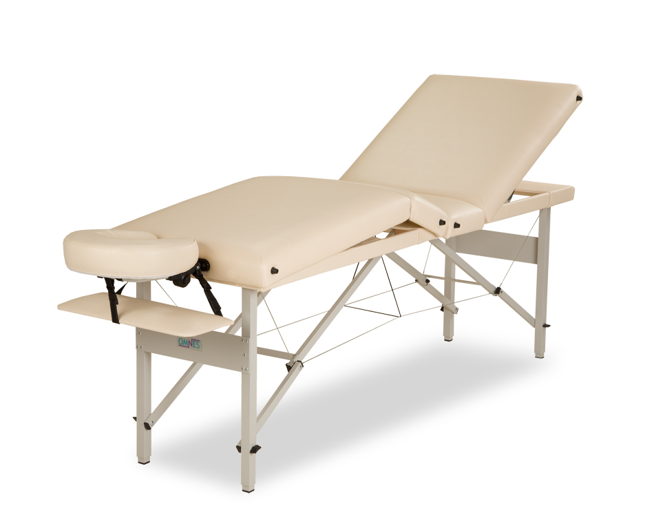 Stół do masażu firmy Omnes najwyższy model, kolor kremowy używany 2 tygodnie. Dodatkowo torba na stół w kolorze czarnym i wałek pod nogi w kolorze stołu. cena 600zł